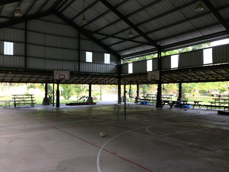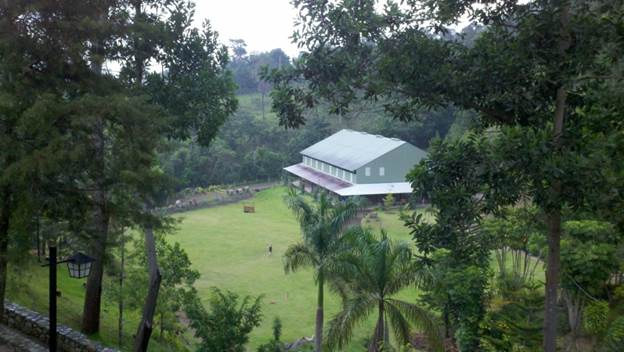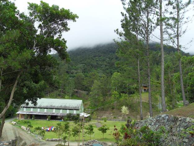 This is the view from the gym looking back up at the dorm/lodge (left), dining area (center) and dish-washing