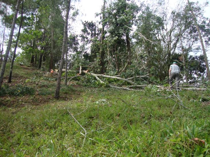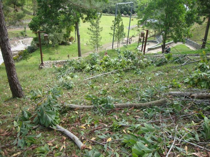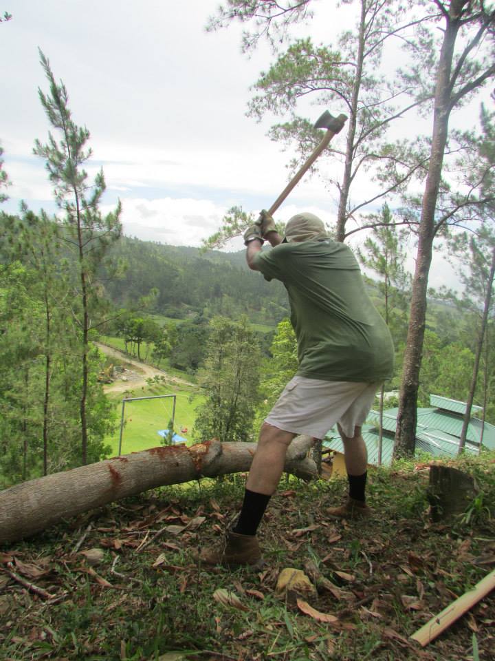 diseased so we cut them down and chopped them up for firewood to be used by the young Dominican campers this summer.