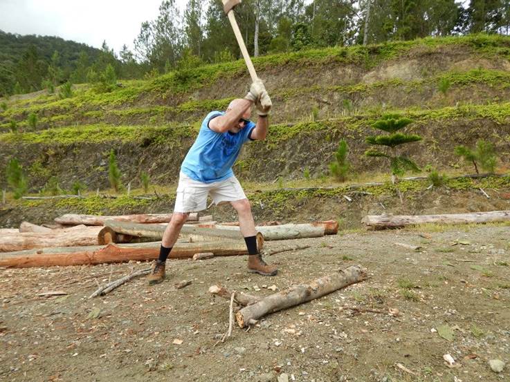 This is back at the top of that worksite with me trying to cut through Acacia wood with a dull ax.