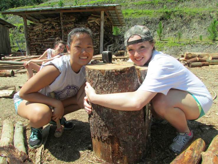 This is my daughter, Olivia (right), and KT Underwood (left), at the wood-chopping station. You can see some of our work