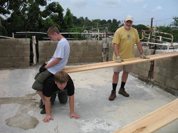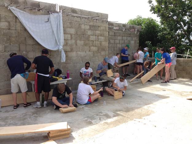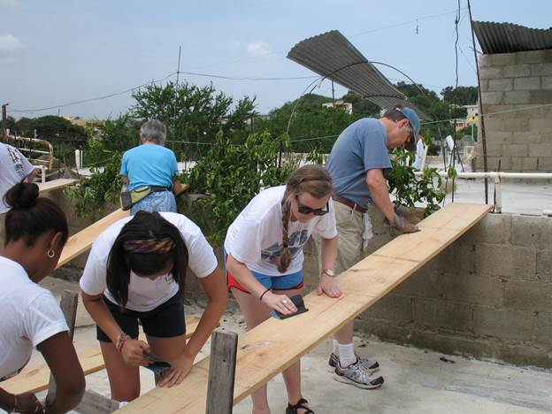 Here is our crew at work in early stages, preparing the wood. My daughter, Olivia, is shown here next to