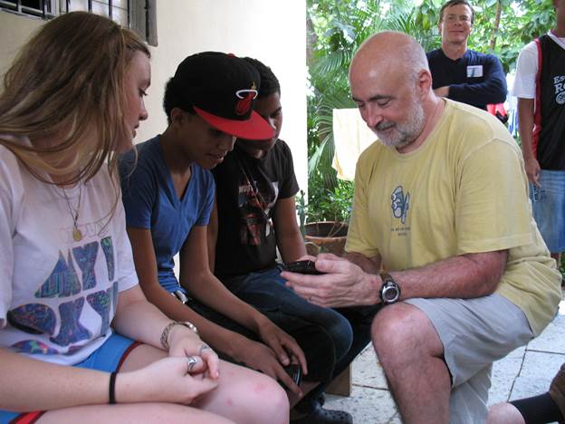 During lunch breaks and at other times, I showed local kids some photos of my family on my cell phone.